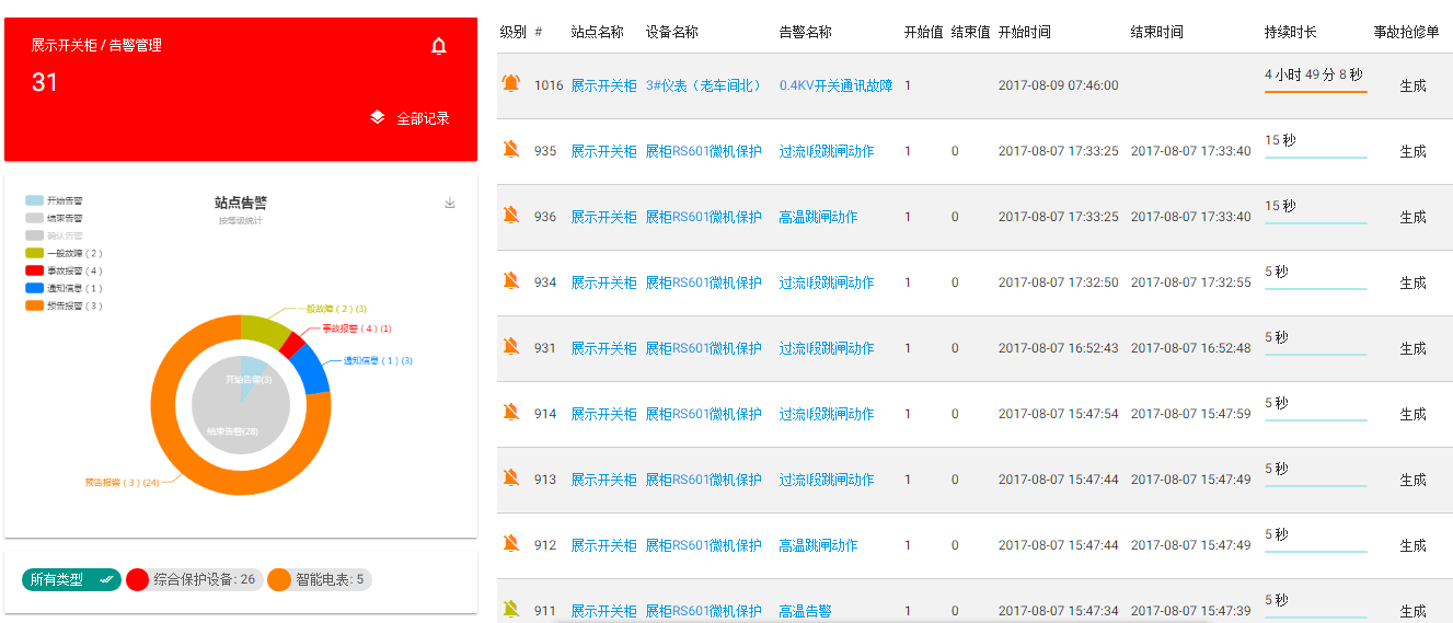 對(duì)各個(gè)回路運(yùn)行狀態(tài)實(shí)時(shí)監(jiān)測(cè),出現(xiàn)異常情況,立即提示并發(fā)出聲光報(bào)警,客戶可通過(guò)歷史記錄回溯進(jìn)行事故分析。