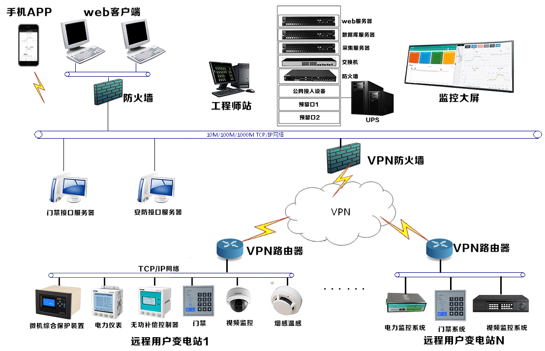 可滿足客戶多設(shè)備接入(包括微機(jī)綜合保護(hù)、電力儀表、無(wú)功補(bǔ)償控制器、變壓器溫控儀、門禁系統(tǒng)、安防系統(tǒng)等),內(nèi)置豐富協(xié)議可滿足常用Modbus-RTU、DLT645、IEC61850、IEC101/102/103/104等,如客戶有特殊協(xié)議可開發(fā)定制。