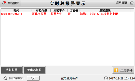 實時顯示報警信息包括報警時間、報警值等信息,快速指導運維人員及時處理故障。